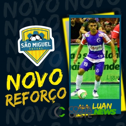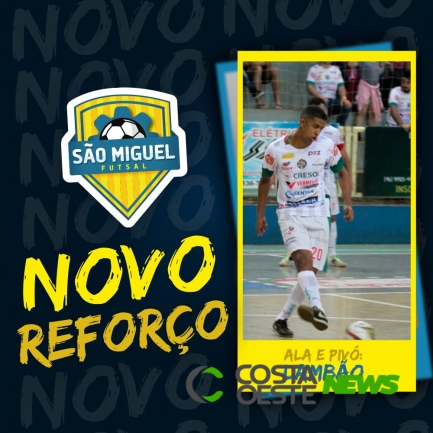 O 10º reforço do São Miguel Futsal foi anunciado nesta manhã de segunda-feira (28), se trata do ala/fixo Dada. Ele se juntará a Pedro Fininho, Lambão, Gabriel, Luan, Topera, Maneca, Felipe Bento, Luisinho e Preá. Todos estes atletas serão comandados, no Campeonato Paranaense de Futsal Série Prata 2019, pelo novo técnico da equipe Seco Zanetti.