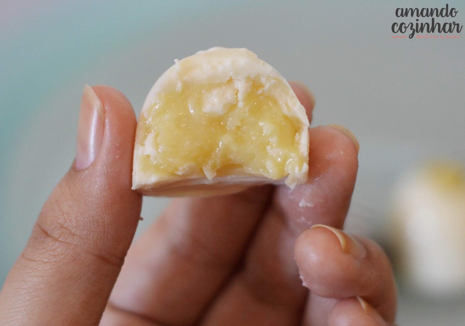 Na hora de montar a trufa coloque um pouco de calda de cereja, uma cereja e o creme de chocolate.