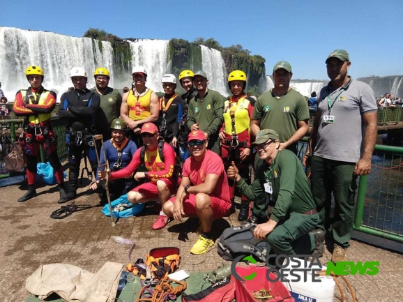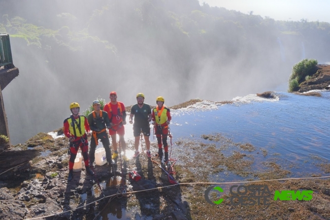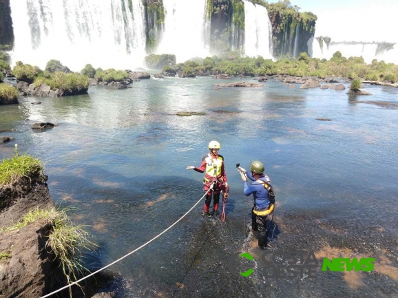 Aproveitando a baixa vazão do Rio Iguaçu, colaboradores das Cataratas do Iguaçu S.A., ICMBio e voluntários do Corpo de Bombeiros do Paraná estão realizando uma ação de limpeza, no Rio Iguaçu, na região da Passarela das Cataratas do Iguaçu.