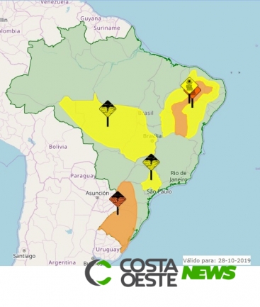 O Instituto Nacional de Meteorologia – INMET divulgou nesta segunda-feira (28) a lista dos municípios que estão com alerta laranja para temporais. Ao todo 277 cidades do Paraná compõe a relação, entre elas: Foz do Iguaçu, Guaíra, Itaipulândia, Marechal Cândido Rondon, Maripá, Matelândia, Medianeira, Mercedes, Missal, Santa Helena, Santa Terezinha de Itaipu, Serranópolis do Iguaçu, São Miguel do Iguaçu, Terra Roxa, Vera Cruz do Oeste e Entre Rios do Oeste .