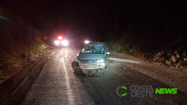 Ao perceber a fuga de outros veículos foi realizado acompanhamento tático dos demais, momento em que foi encontrado um veículo Logan acidentado na Rodovia, ainda com seu condutor no interior do veículo, o qual estava completamente carregado de mercadorias.