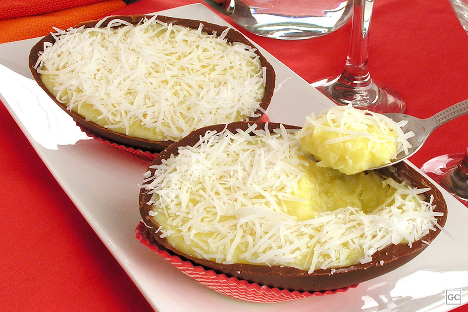 - Coloque nas casquinhas de chocolate já prontas e leve à geladeira por 3 horas.