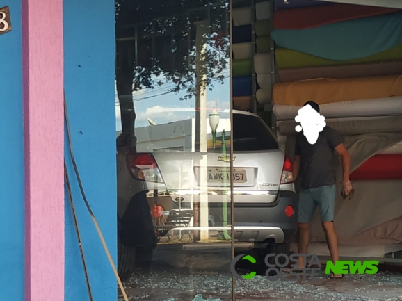 Em seguida o veículo subiu a calçada, colidiu contra a vitrine de uma loja, adentrando sobre o estabelecimento.Por sorte ninguém passava pelo local no momento do acidente.