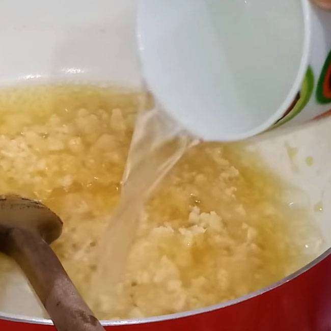 2. Mexa sem parar até derreter um pouco e formar pelotinhas de açúcar;