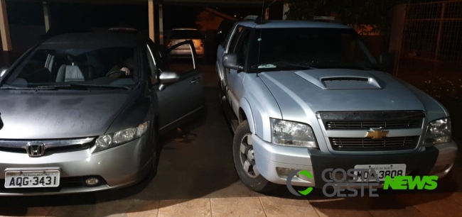 A Polícia Militar 2ª Cia do 14º BPM recuperou na madrugada deste domingo (28), por volta das 02h, dois veículos e uma televisão que foram tomados em assalto na quinta-feira (25) no centro de São Miguel do Iguaçu.