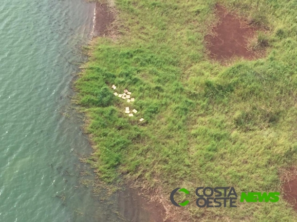 Durante sobrevoo de reconhecimento com o helicóptero do tipo PANTERA da Aviação do Exército, que se encontra em apoio à Operação Fronteira Sul/ÁGATA, militares do 33º Batalhão de Infantaria Mecanizada de Cascavel, avistaram material suspeito abandonado próximo a margem do Rio Paraná pronto para ser transportado.