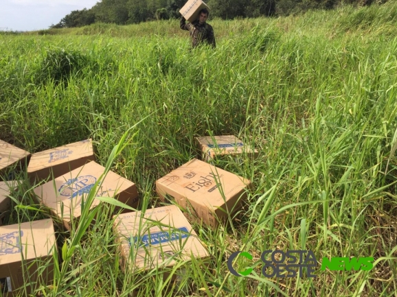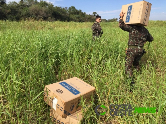 Nesta segunda-feira (27) diversas caixas de cigarros foram apreendidas durante a Operação Fronteira Sul/ÁGATA na região de Guaíra.