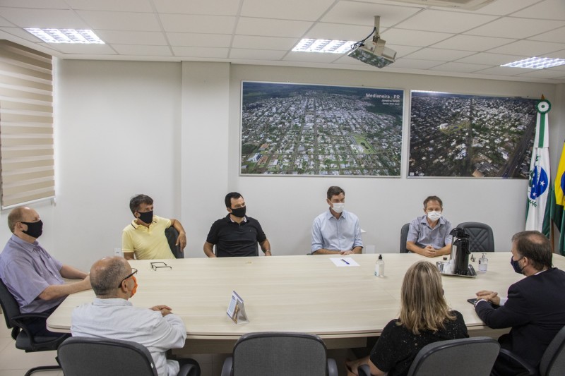 Na manhã desta quarta-feira (10) o vice-prefeito Evandro Mees recebeu a visita cortesia do Reitor da UTFPR Marcos Flávio de Oliveira Schiefler Filho, a procuradora Federal/Geral da UTFPR Leslie Bocchino, o reitor de Relações Empresariais e Comunitárias Rubens Alexandre de Faria, o Diretor Geral do Campus Medianeira Flávio Feix Pauli, diretor de Assuntos Comunitários Antônio Luiz Baú, diretor de Planejamento Ezequiel de Lima, e o diretor de Graduação Cláudio Leones Bazzi, para falar sobre as parcerias entre a universidade e a prefeitura e o Parque Cientifico e Tecnológico.