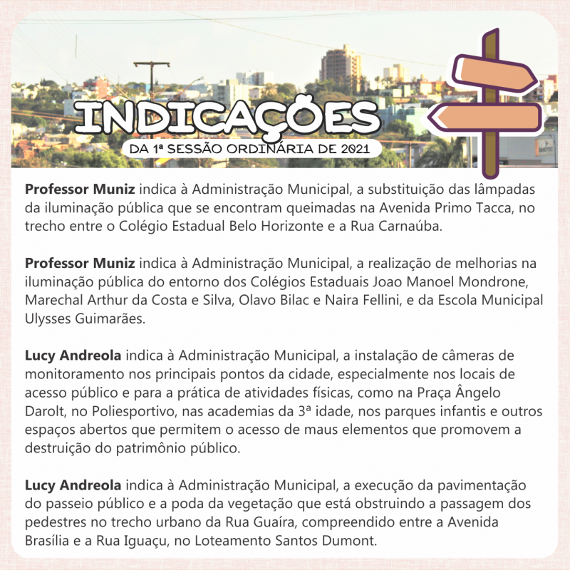 Vereadores Lucy Andreola, Aninha Santos e Marcos Berta, solicitam apoio ao deputado federal, Nelsi Coguetto Maria, e ao governador Ratinho Junior, com a destinação de 1 milhão de reais através de emenda, para a realização de pavimentação poliédrica na estrada que liga o Morro da Salete à Área Industrial do Município.
