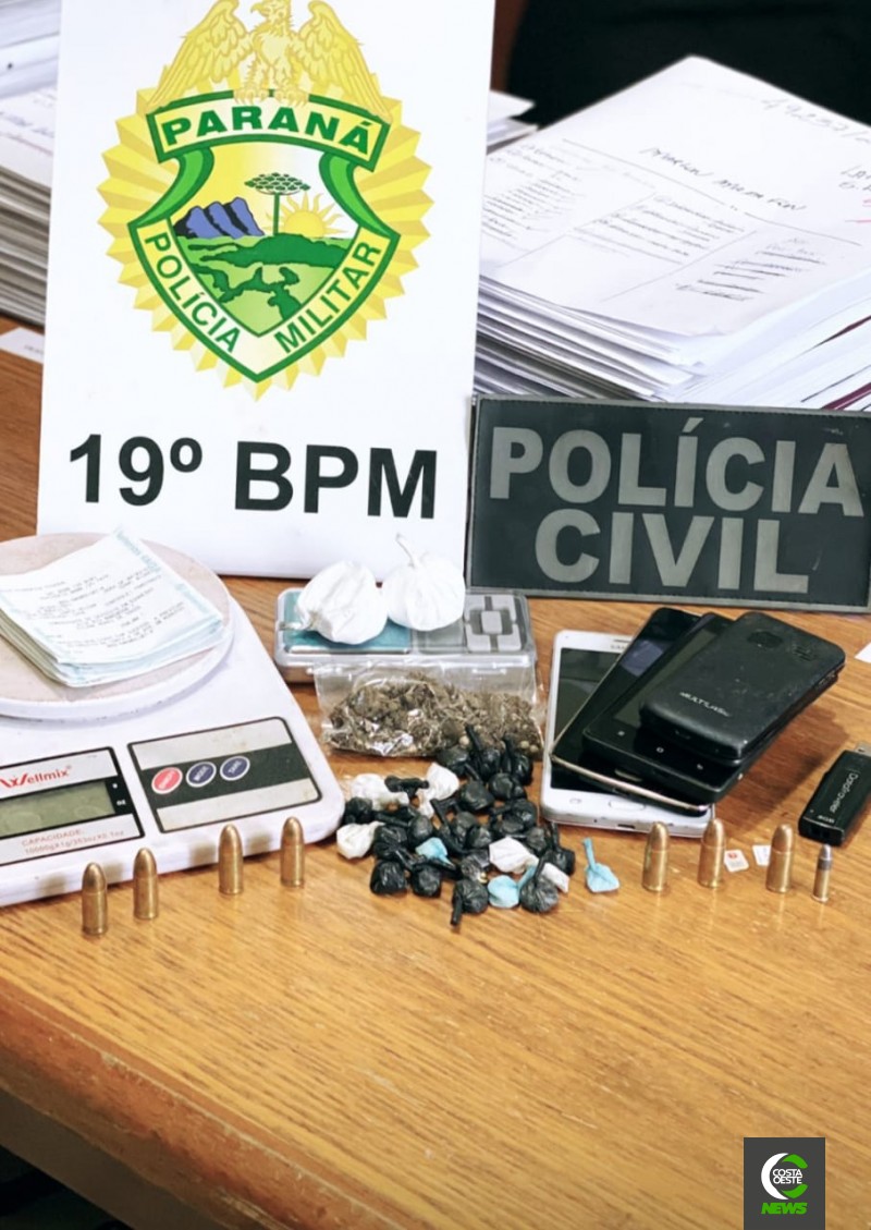 Foram apreendidos três veículos, os quais estão sendo averiguados. Na Rua Rio de Janeiro foram localizadas 32 buchas de cocaína, com peso total aproximado de 39 gramas, além de uma balança de precisão, sendo presa uma mulher de 45 anos e apreendida uma adolescente de 16 anos.