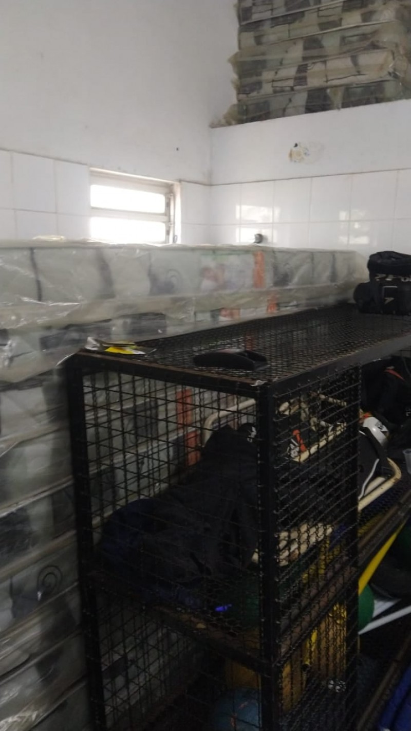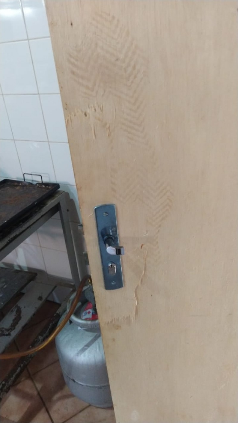 Ao se deslocarem até o local foi constatado que as salas que guardam material esportivo, produtos de limpeza, equipamentos e demais itens, foi arrombada e uniformes esportivos estavam espalhados pelo chão, bem como produtos de limpeza com galões estourados.