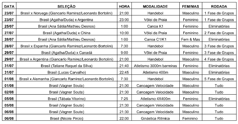 O Programa Geração Olímpica conta com a participação de dez bolsistas nos Jogos Olímpicos de Tóquio, cuja abertura oficial acontece na nesta sexta-feira (23), às 8 horas. A partir dessa semana será possível conferir uma tabela que lista a data, o horário, a modalidade e a rodada dos competidores. Esse guia será atualizado de acordo com eventuais mudanças e também considerando possíveis classificações dos bolsistas da programa para as próximas fases.