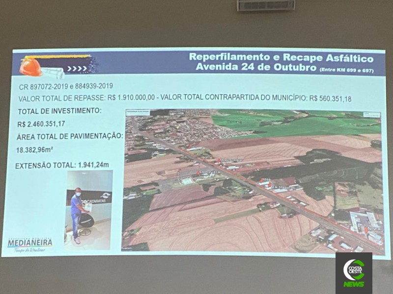 A prefeitura de Medianeira elaborou projeto técnico para pavimentação de um trecho de aproximadamente 2 km na Av. 24 de Outubro, entre a Indústria Dabol e a Ninfa. Os recursos foram viabilizados através de emendas parlamentares, com o Deputado Federal, Evandro Roman.