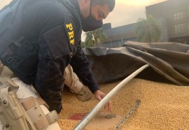 Por volta das 5h, a equipe da PRF abordou no perímetro urbano de Guaíra uma combinação de veículos de carga conduzido por um homem que disse estar carregando soja de Novo Horizonte do Sul (MS) para Maringá (PR).