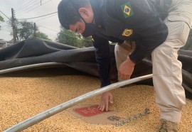A Polícia Rodoviária Federal (PRF) apreendeu na madrugada dessa quarta (22), em Guaíra (PR), 450 mil maços de cigarros paraguaios contrabandeados num bitrem carregado com soja. O motorista foi preso em flagrante.