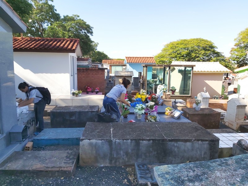 Os dois cemitérios da cidade têm lixeiras espalhadas pelos corredores para que as pessoas depositem o lixo.