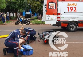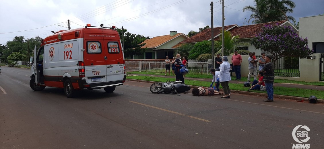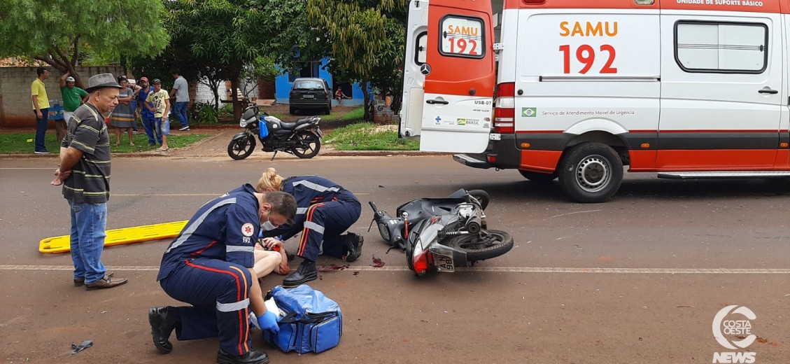 A batida ocorreu na Rua Pará, próximo ao cruzamento com a Avenida Curitiba. Segundo informações, a motocicleta seguia sentido centro, quando colidiu na traseira de um carro que sai de uma residência.