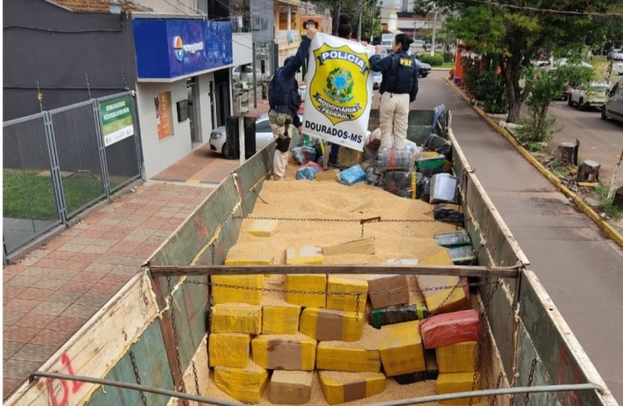 A equipe de policiais rodoviários federais deu ordem de parada, no km 30 da rodovia estadual MS-164, ao conjunto veicular Scania T112, de placas de São Paulo, ocupado pelo condutor, de 29 anos, e pela passageira, de 41 anos. O homem disse que transportava soja, mas deu respostas contraditórias às perguntas dos policiais e demonstrou um nervosismo exagerado com a abordagem policial.