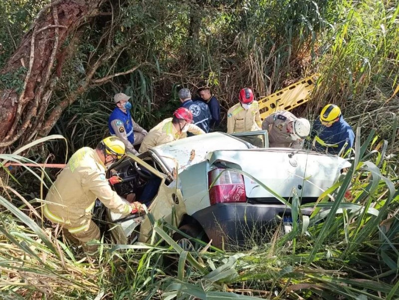 Ainda conforme o Corpo e Bombeiros um caminhão, três ambulâncias, viatura do médico e do Oficial de área foram enviados para atender a ocorrência. Numa atuação conjunta das equipes, as vítimas foram atendidas ao mesmo tempo e em diferentes lugares da cena do acidente: a mulher no acostamento da BR, um homem no barranco e o outro dentro do veículo.
