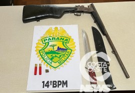 Em busca minuciosa no veículo os policiais encontraram uma carabina calibre 36 e duas munições ao lado.