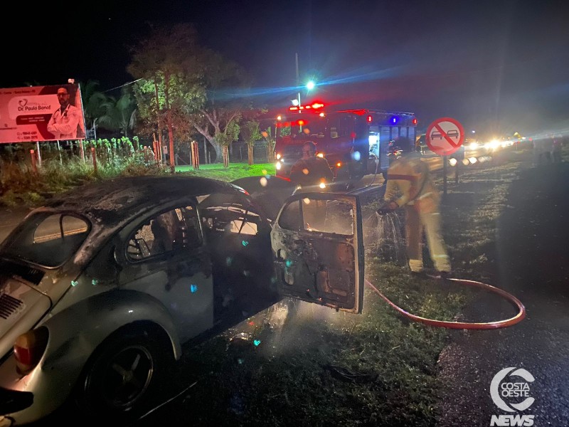 Na noite desta sexta-feira (23), por volta das 19h15, equipes do Corpo de Bombeiros, Defesa Civil e Policia Rodoviária Estadual, foram acionadas para se deslocar até a PR-317, trecho que liga Santa Helena ao distrito de Sub-Sede, onde um fusca estava em chamas.