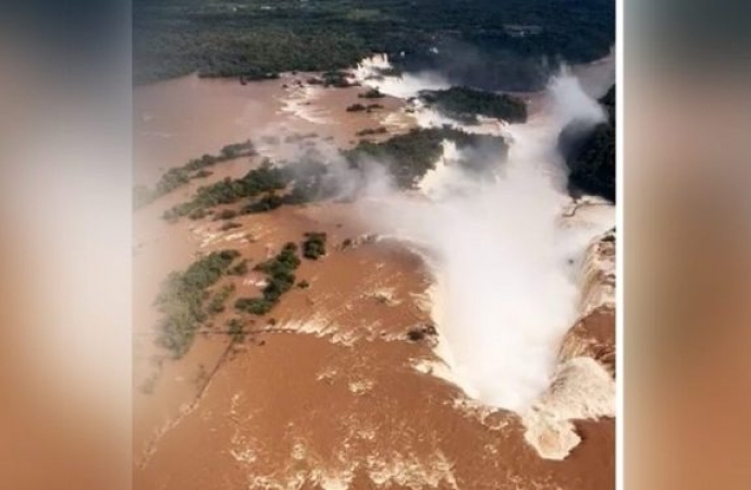 Parte da passarela de acesso à “Garaganta do Diabo”, no lado argentino do Parque Nacional do Iguaçu, foi destruída devido a alta vazão das Cataratas, que registrou no sábado cerca de 11 milhões de litros por segundo. As demais trilhas seguem abertas aos turistas.