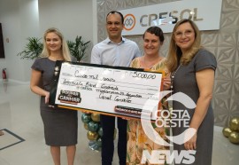 Na oportunidade também foi entregue um prêmio de R$ 5 mil a uma associada contemplada da campanha da Poupança Premiada Cresol.