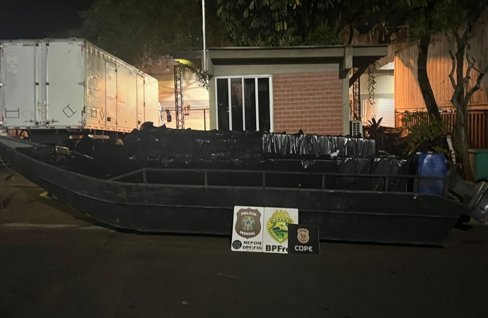 Neste domingo (05/10), a Polícia Militar do Paraná, por intermédio do Batalhão de Polícia de Fronteira – BPFRON, no âmbito da Operação Protetor de Fronteira e Divisas, em ação conjunta com a Polícia Federal – NEPOM e Polícia Civil - COPE, visualizou uma embarcação próxima à base náutica de Itaipulândia, aparentando transportar volumes sobre o convés.