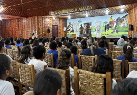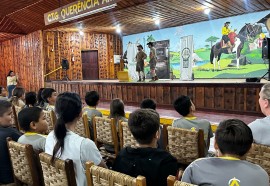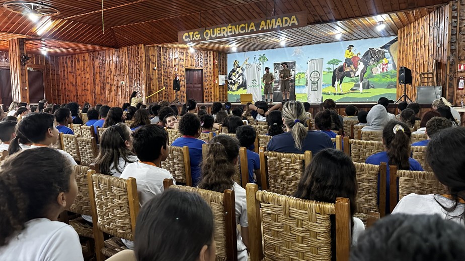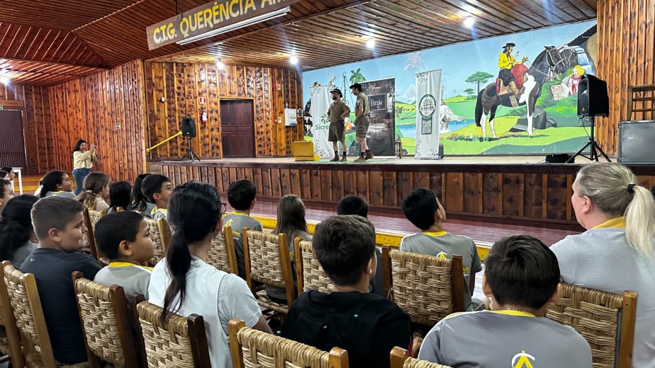 "É com muita alegria que hoje estamos reunidos no CTG, onde estamos trazendo o teatro, em parceria com a prefeitura, que de prontidão aceitou o projeto, trazendo mais de 400 alunos para esse encontro", disse a gerente Bruna Bortolini.