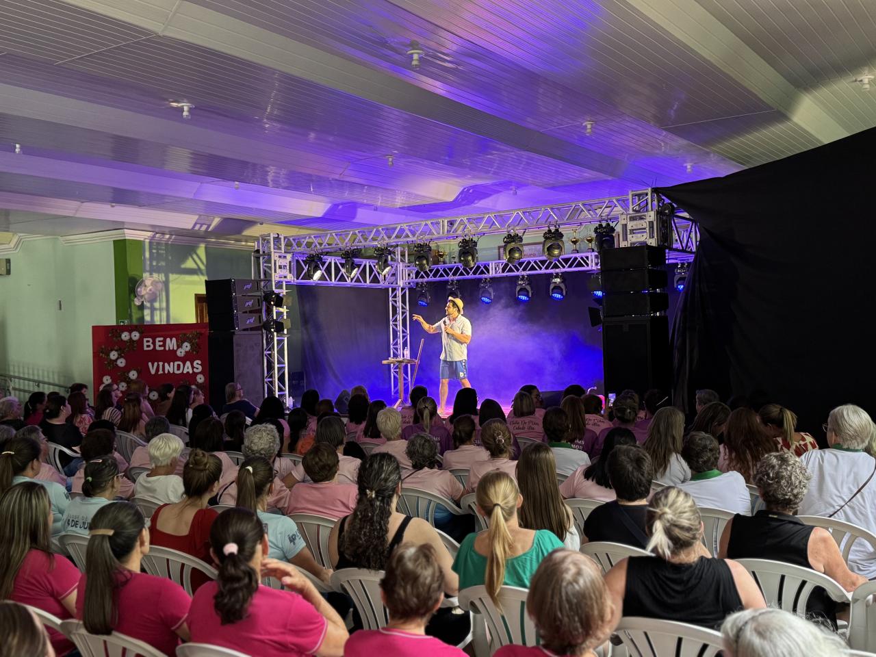 A apresentação foi uma verdadeira celebração da cultura, trazendo à tona, de forma cômica e carinhosa, as características do típico colono da região. Com um humor leve e acessível, Badin cativou as participantes, fazendo uma leitura bem-humorada do cotidiano rural e das situações típicas enfrentadas pelas mulheres que vivem em áreas mais afastadas. A performance trouxe à tona o cotidiano dessas mulheres de forma divertida, ao mesmo tempo em que reforçou a importância de sua atuação na comunidade e no desenvolvimento local.