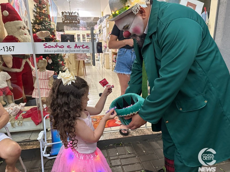O comércio local está funcionando em horário diferenciado para atender a demanda das festas de fim de ano. Famílias que aproveitavam a abertura das lojas foram surpreendidas pelas brincadeiras e intervenções dos artistas, que buscaram tornar as compras natalinas mais leves e divertidas.