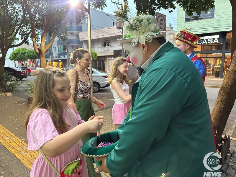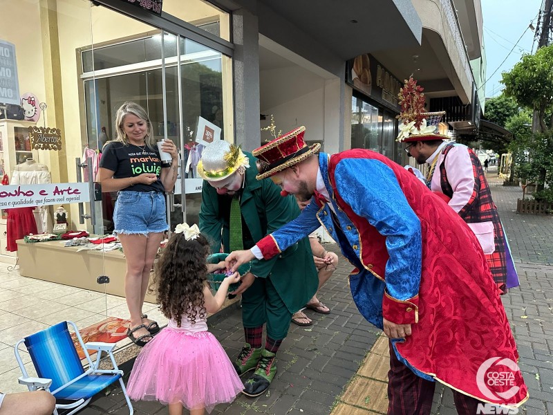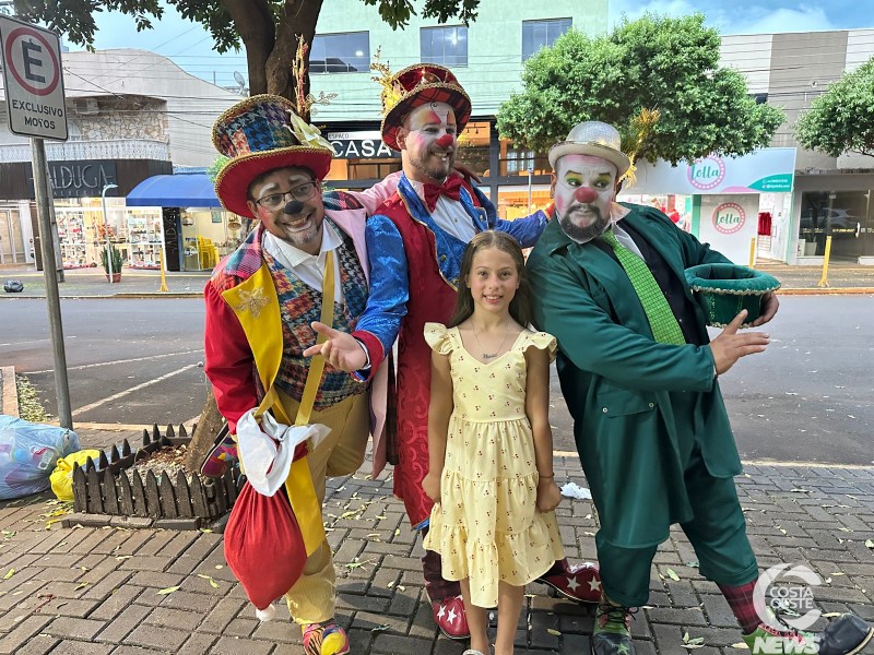 As ruas do centro de São Miguel do Iguaçu ganharam cores e sorrisos extras neste domingo (21). A atração Pingos de Arte, realizada pela Associação Comercial e Industrial de São Miguel do Iguaçu (Acismi) com apoio da prefeitura, levou palhaços e performances artísticas para interagir com o público que circulava pela Rua Farroupilha.