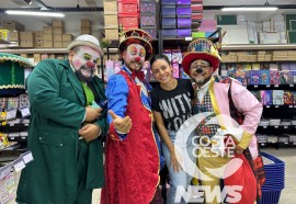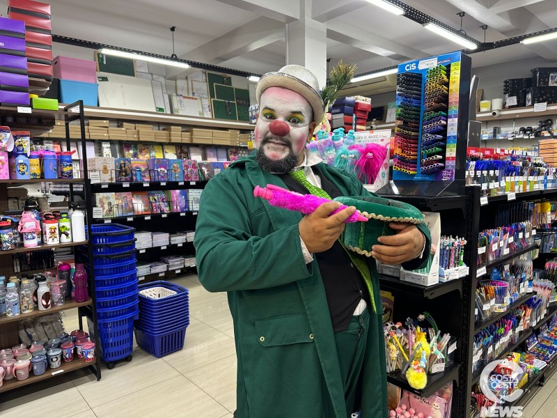 "Viemos trazer um pouco de alegria e de descontração para esse comércio tão lindo e essa cidade maravilhosa", afirmou o palhaço.