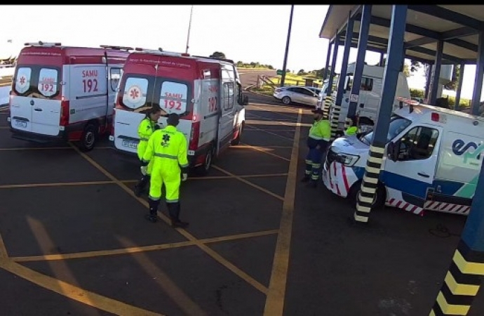 Foi na base operacional da EPR Iguaçu em Candói. Pouco antes das 6h uma ambulância do SAMU chegou ao local solicitando apoio no atendimento da gestante Camila Prado de Almeida, moradora de Cantagalo, que esperava gêmeos.