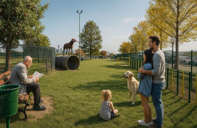 O projeto inclui o plantio de árvores nativas, cercamento, circuito agility, obstáculos de eucalipto roliço, túnel, trio de obstáculos em altura, rampa fixa sobe e desce, gangorra, lixeira, bancos, chimarródromo, totem com água para visitantes e animais.