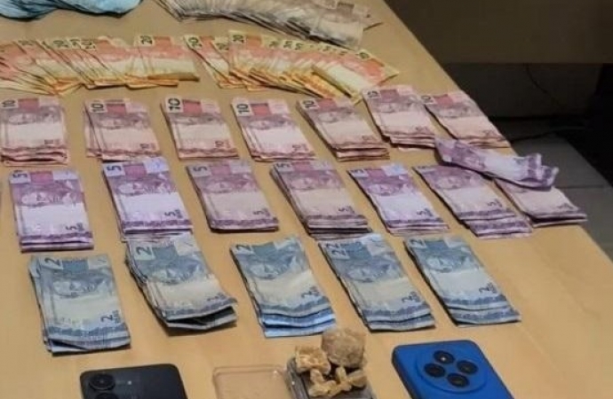 Em buscas no imóvel, foram apreendidos aproximadamente R$ 6.000,00 em dinheiro trocado, uma balança de precisão e uma quantidade considerável de entorpecentes, o que caracteriza o crime de tráfico de drogas.
