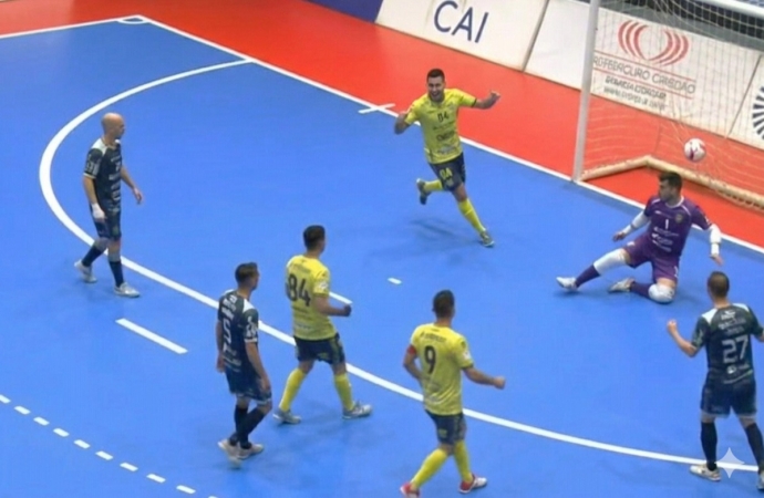 A partida começou com intensidade, mas a rede só balançou na metade do período inicial. Diferente do esperado pela torcida local, quem marcou primeiro foi o São Miguel do Iguaçu. Aos 12:59 do primeiro tempo, Pedrinho aproveitou a oportunidade para abrir o placar para o Amarelinho e silenciar momentaneamente o ginásio.