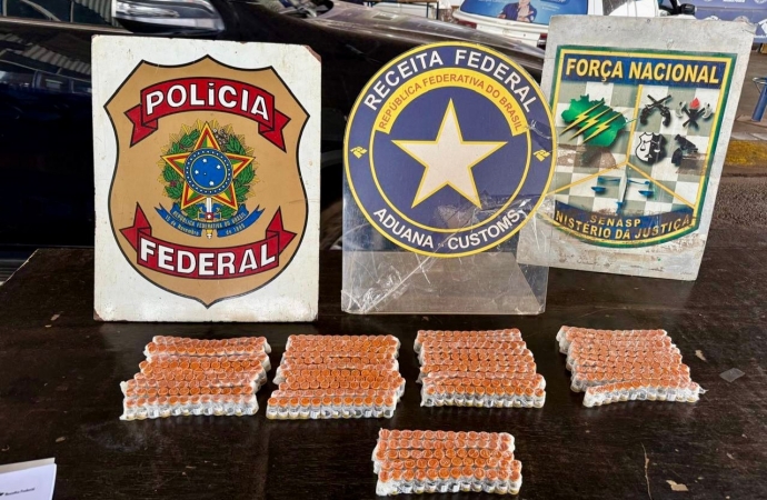 Na tarde de sábado (07/03), durante fiscalização de rotina realizadas pela Receita Federal e com o apoio da Força Nacional na Ponte Internacional da Amizade, foram encontradas 560 ampolas de medicamento para emagrecimento com uma senhora que tentava ingressar no país como viajante de táxi.